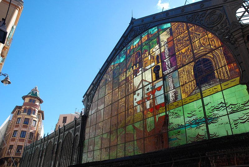 Glasfönster på den stora saluhallen, Mercado Central de Atarazanas